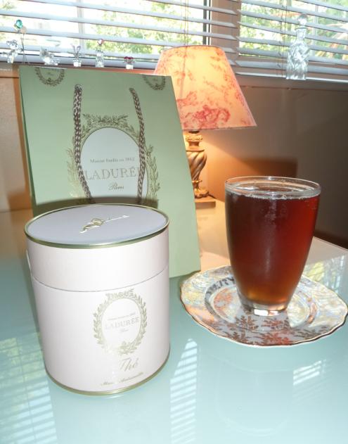 Pour le goûter, nous avions pris des Saint Honoré à la Rose et à la Rramboise, accompagnés de thés. Un thé mélange Ladurée pour moi, et un thé glacé pour mon amie.