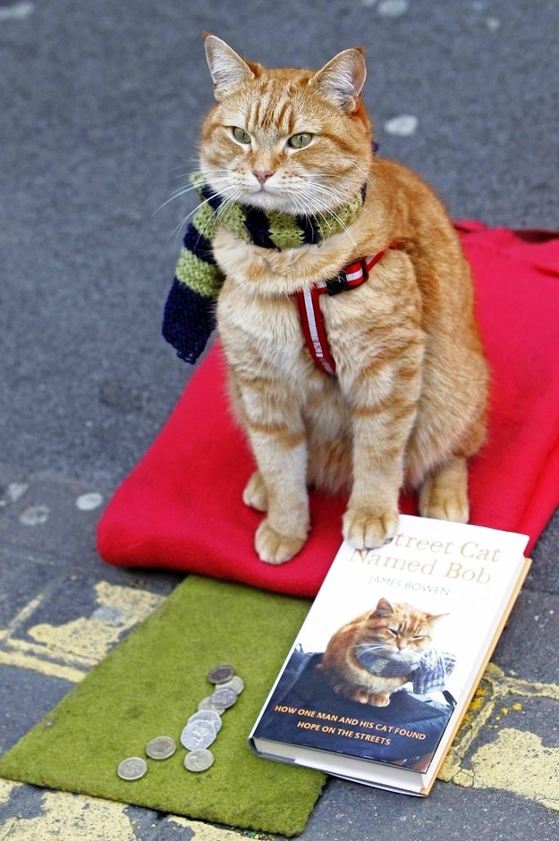 Bob semble ne plus avoir envie de quitter James, et plusieurs fois par semaine James emmène son chat avec lui pour vendre le Big Issue.