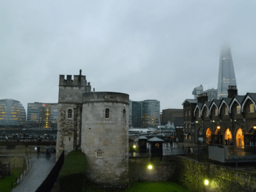 L’ambiance à la Tour de Londres était vraiment mystérieuse avec cette brume, on ne pouvait même pas voir The Shard en entier: