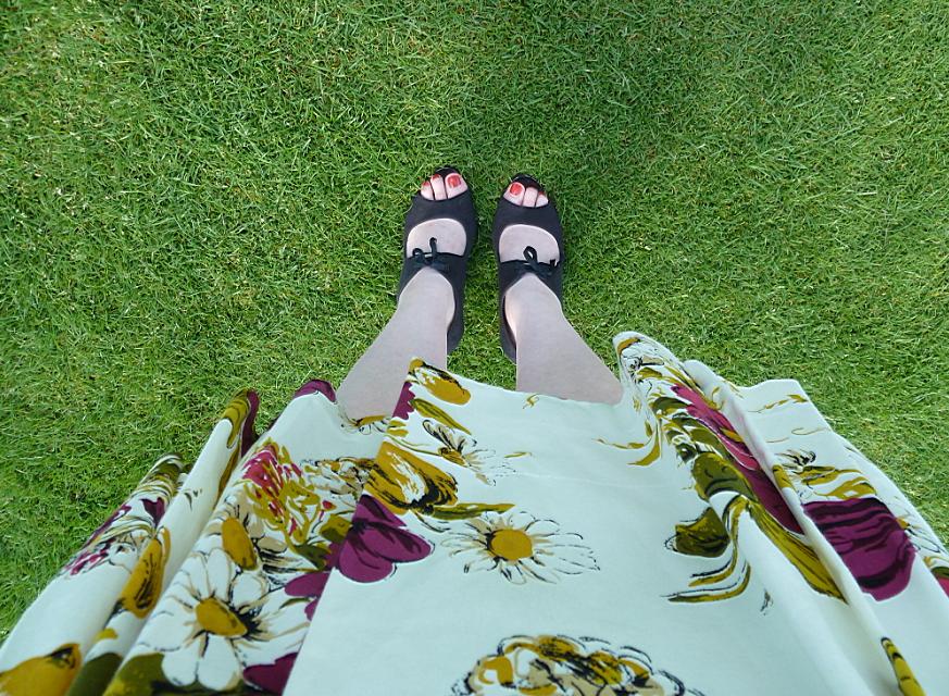 Au final, je n’ai pas eu le temps de me prendre trop la tête par rapport à ma tenue. Le matin j’ai gardé mon trench fleuri Hobbs, ce manteau a vraiment une jolie coupe, on dirait une robe des années 1950, car elle est très cintrée à la taille et très évasée en bas. Quant aux accessoires j’ai opté pour des sandales découpées noires, un Doctor’s Bag en cuir noir (rempli de médicaments, uh huh) et des lunettes de soleil Prada.