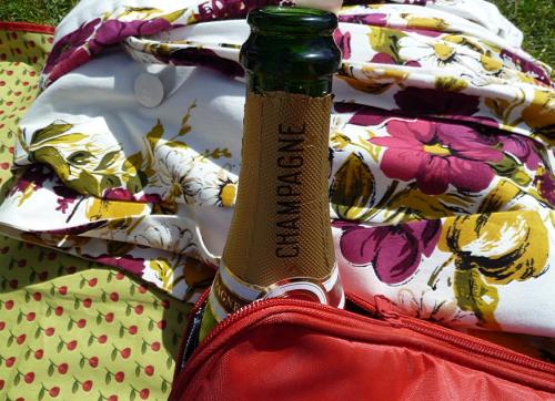 J’étais plutôt fière de moi, j’avais pensé à congeler trois petites bouteilles d’eau que j’ai glissé dans une grande pochette isotherme, pour que le Champagne reste au frais un petit moment… A défaut d’avoir un sceau à Champagne rempli de glaçons. Beaucoup de personnes étaient beaucoup plus organisées que nous: grand panier à pic-nic Fortnum & Mason, sceau à Champagne pliable Veuve-Clicquot…