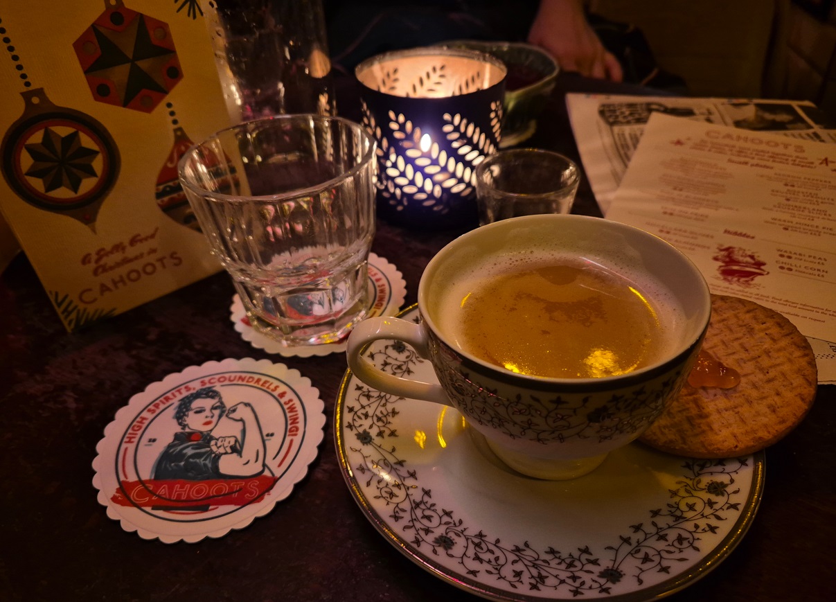 Cockails à Cahoots! C’est un bar esprit années 1940 que j’affectionne particulièrement. Leurs cocktails sont toujours délicieux, et comme vous pouvez le voir, servis dans des verres intéressants,…!