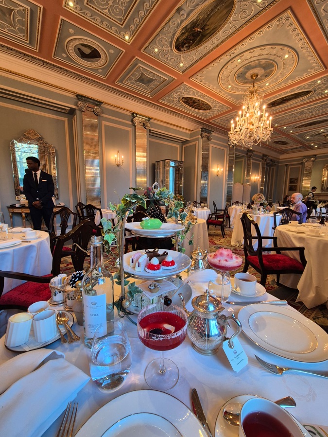 Nous avons pris un Afternoon Tea festif dans la salle Belgravia, avec un joli menu de saison! Cocktail aux épices de Noël, petits sandwiche à la dinde, mince pies…