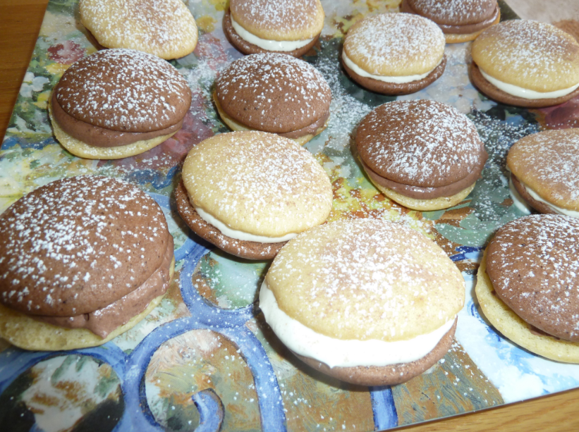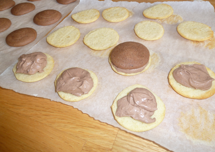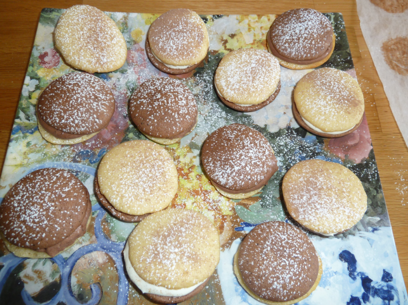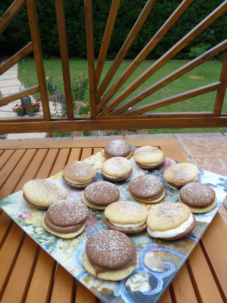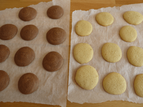A la demande de Mummy, j’ai testé les Whoopie bicolores au chocolat noir et au chocolat blanc, d’après Mummy c’est les plus chics!