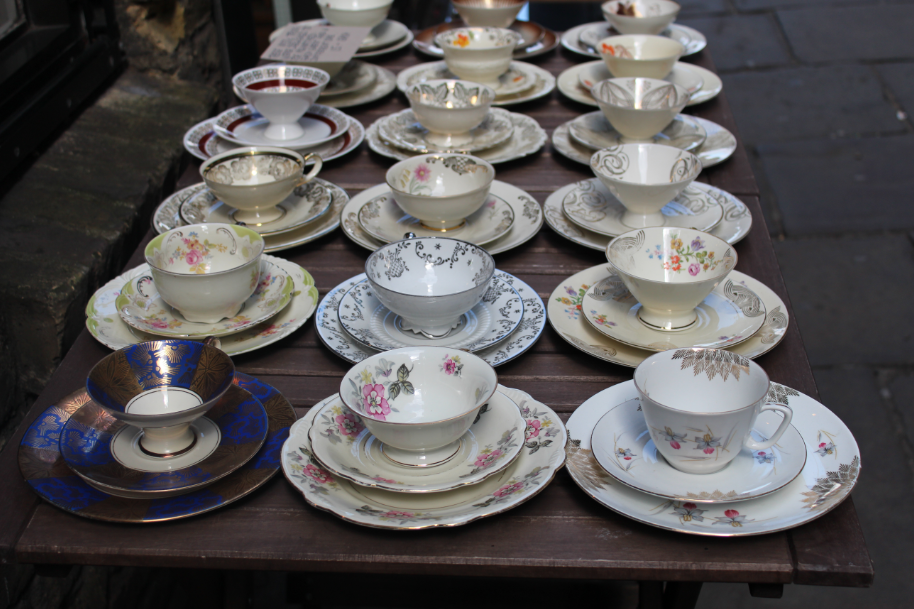 Les petites tables sont tout mimi, on y trouve de la vaisselle ancienne dépareillée, ce qui ne peut que me plaire! En effet, j’adore ces petites tasses qui me font penser à ma grand-mère adorée!