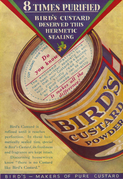 5. En hiver, les anglais servent leur crumble avec de la custard, c’est une véritable crème anglaise, qui se sert chaud. Pour préparer le custard, rien de plus simple! En effet, je ne connais personne qui prépare du custard maison, en Angleterre on utilise le Bird’s custard powder, produit inventé en… 1837! Il suffit de faire chauffer à feux doux du lait, du sucre et le custard powder afin d’obtenir une crème anglaise épaisse, chaude et délicieuse.