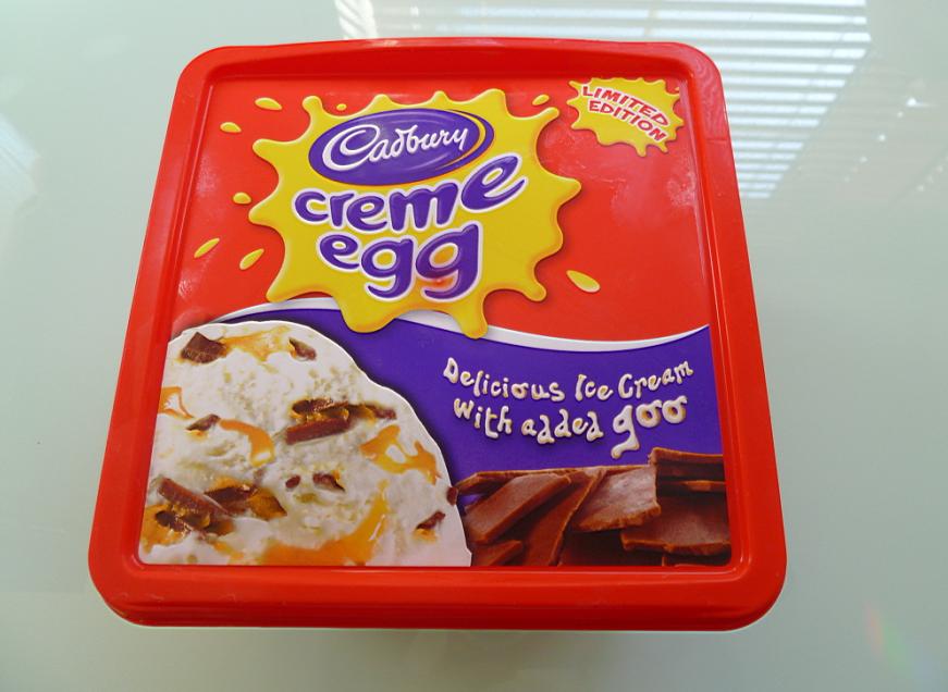 En guise de goûter gourmand, je n’ai pas pu résister lorsque j’ai découvert cette glace en magasin. Hmm la glace aux Cadbury’s Creme Egg! En vérité il s’agit surtout d’une glace très basique à la vanille (les glaces à la vanille sont presque toujours blanches en GB, et sans goût particulier, je trouve cela assez suspect!) avec des éclats de chocolat ainsi qu’une espèce de sauce orangé, supposé représenter le fondant des Creme Eggs. Ecoeurant et enfantin à souhait!