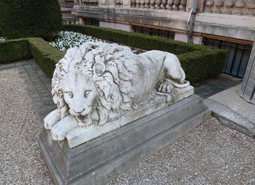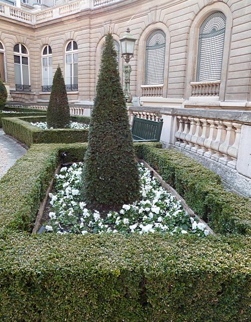 La Cour est charmante, j’aime les petites statues, les bustes, les plantes exotiques…