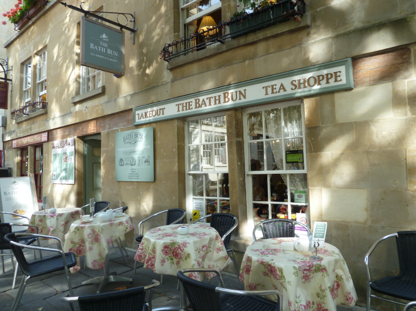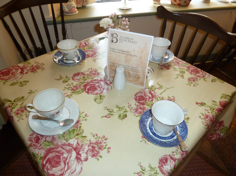 A Bath il y a une multitude de salons de thé rétros, ça fait vraiment plaisir à voir, et je me suis régalée! J’avais bien regardé quelques adresses sur le net avant de me rendre à Bath, mais finalement lorsque j’ai vu The Bath Bun au cours de notre promenade j’ai complétement craqué pour ses nappes fleuries et sa belle carte de thés et de gâteaux, donc nous avons poussé la porte sans plus attendre.