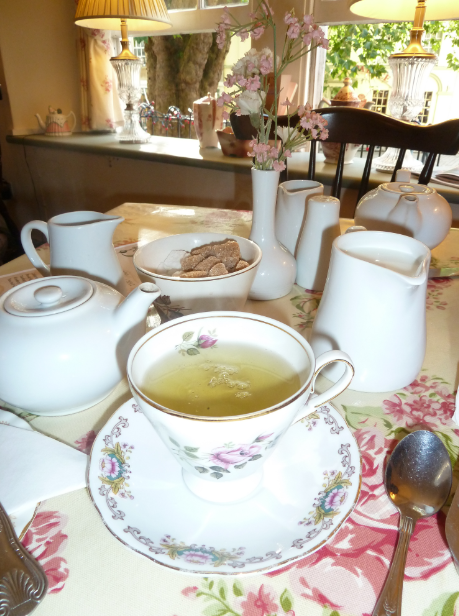 Le décor est chic, rétro, et le salon de thé est rempli de vieilles curiosités. J’adore ces vielles tables et chaises, ces nappes fleuries et la porcelaine vintage.