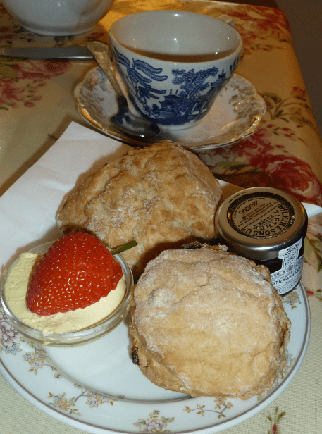 Une copine a opté pour de délicieux scones maison, on m’a dit qu’ils étaient bien réussis! Les scones sont servis avec de la clotted cream et de la confiture à la fraise.