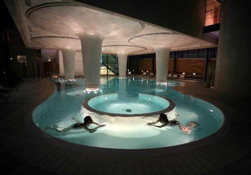 Après m’être reposée dans la salle à vapeur, je me suis dirigée vers la Minerva Bath ci-dessous. C’est la piscine la plus grande du Spa, j’aime tellement le design paisible. On peut y nager, y patauger, se reposer dans le jacuzzi ou profiter des jets de massage pour faire fuir les tensions dans le dos et la nuque.