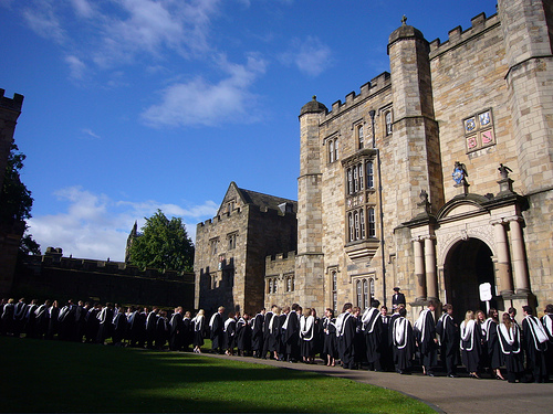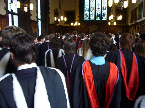 Après être sortie très tard jeudi soir avec mes amis du LLM, il a fallu que je me lève relativement tôt vendredi matin pour commencer tous les préparatifs pour la graduation. Dès 10 heures du matin il a fallu que je sois à ma fac, présentable et en tenue de graduation pour aller chercher les billets réservés aux parents. Chaque étudiant dispose de deux billets pour ses invités, pour ses parents. La graduation est vraiment une cérémonie familiale pour fêter ensemble la réussite des étudiants. Après avoir été chercher les billets,je passe au Château pour récupérer ma robe noire avec la capuche du LLM. La capuche était donc de couleur lavande, avec un ruban de satin blanc, vraiment très jolie! J’espère que j’aurais bientôt des photos!