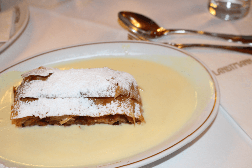Nous avons été fêter cet achat à l’hôtel Bristol, où j’ai pris un Cosmopolitan. Leur bar est tout simplement magnifique! Tout aussi joli que le bar de l’hôtel Sacher je trouve, mais il y avait beaucoup moins de monde et nous avons pu y aller sans réservation.