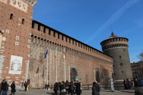Un collègue m’a conseillé la visite du château des Sforza. J’y suis allée à pieds, ce n’est qu’à environ 15 minutes de marche de la Cathédrale. La balade est agréable car on passe par des petites rues commerçantes.