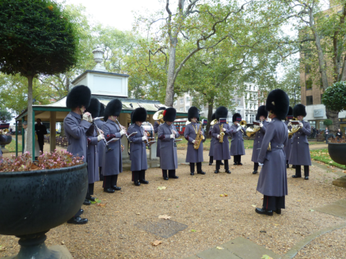 A Mayfair j’entendais de la musique depuis mon bureau, et à midi j’ai enfin pu sortir pour voir ce qui faisait autant de bruit! Sachant que je travaille en hauteur, je peux vous dire que la musique portait vraiment! A Berkeley Square il y avait un concert gratuit, c’était une scène vraiment comique car ces adorables soldats jouaient de la musique de films, comme les airs de StarWars… Only in London!