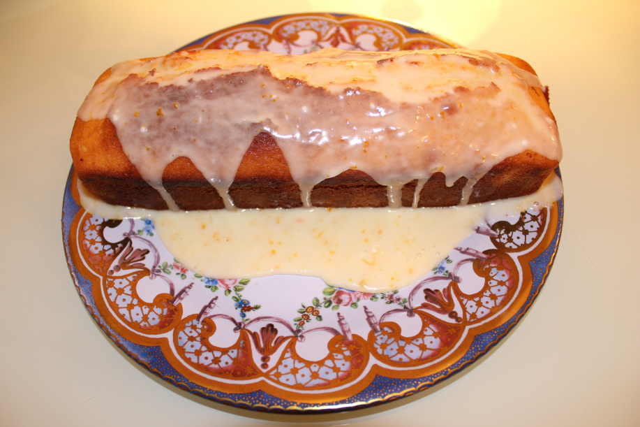 1. Enfin, préparer le glaçage avec le jus et le zeste du demi orange restant et le sucre glace. Verser le glaçage sur le cake.