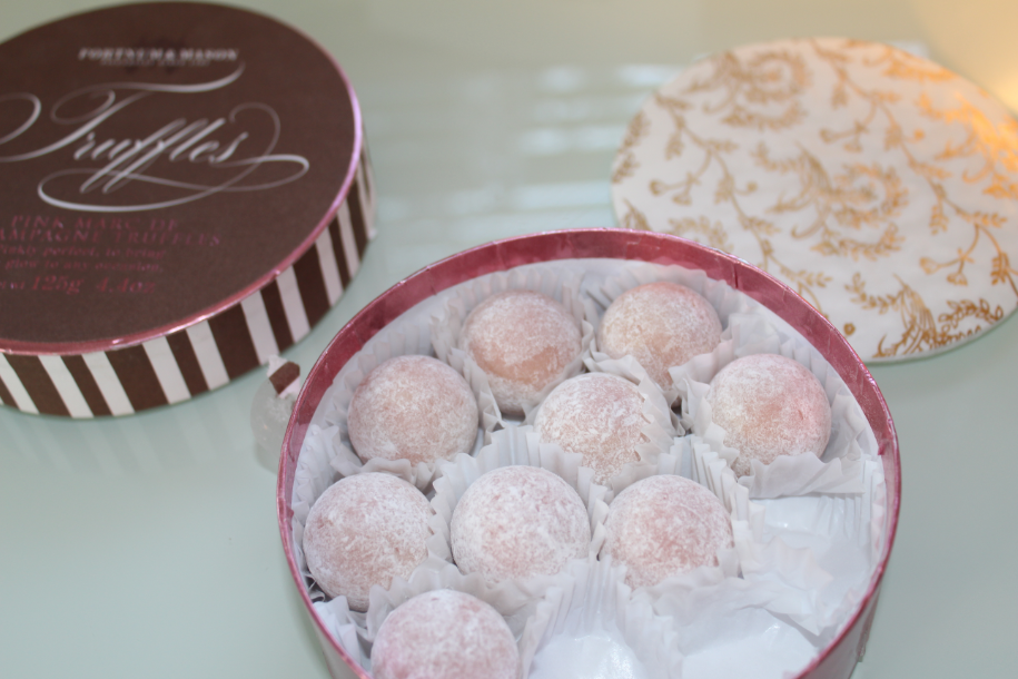 Ensuite, j’ai voulu essayé les Truffes roses au Champagne de chez Fortnum’s! Je ne les avais pas encore testés, ils sont très bons! (Mais pas aussi bons que ceux de chez Charbonnel & Walker, mes préférés).